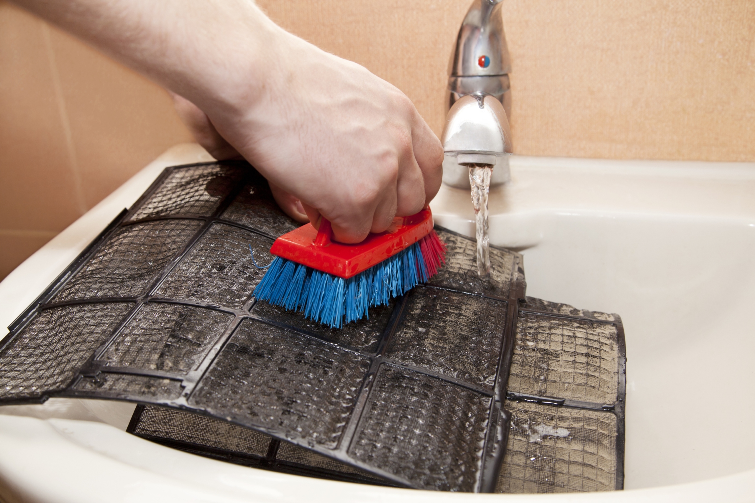 Premium Photo Man Hand Hold Air Conditioner Filter Cleaning Concept